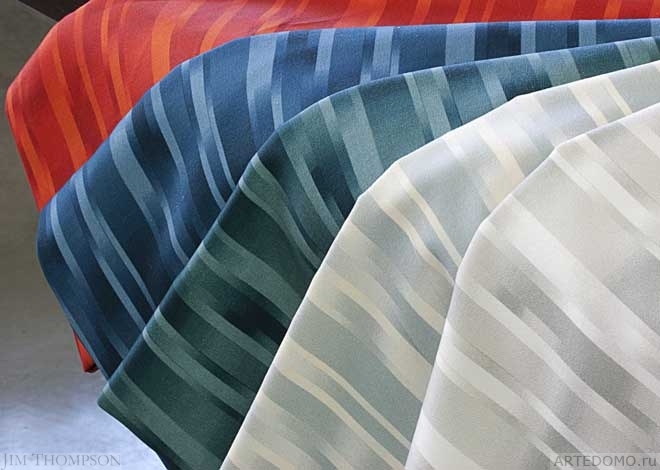 Это хлопчатобумажная ткань представляет собой цифровое воспроизведение традиционной индонезийской техники икат. Паттерн напоминает об игре света на занавесе.
