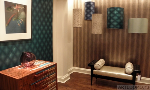 Экспозиция напоминала гигантский оргáн. Среди экспертов были: директор ARTE DOMO Юлия Драпезо, постоянные клиенты нашей компании Илона Меньшакова и Ирина Маркедонова (декораторское бюро Sisters-design), декораторы Альбина Назимова, Екатерина Федорченко, Наталья Романова, руководитель текстильного отдела салона Konzept Татьяна Полянская, глава компании Aliance of High Textile Елена Якунина, руководитель текстильного салона French Touch Илья Сологубовский, декоратор, руководитель студии Vellamo Наталья Мещанинова, Среди отобранных тканей три были из шоу-рума ARTE DOMO: 100% шелк ручного ткачества ILLUSION (коллекция BENJARONG, марка JIM THOMPSON, 2009), ткань TIBETAN SUN (коллекция TONY DUQUETT, марка JIM THOMPSON, 2009), ткань из хлопка с