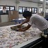 Дизайнеры ARTE DOMO придумали из тканей нечто наподобие труб, а под тканями поместили скошенные цилиндры с фотографиями экспертов и их мнением, почему та или иная ткань кажется им актуальной.